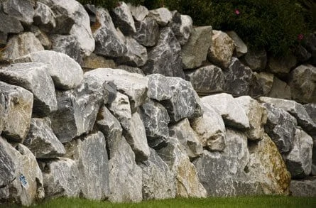 Due to boulders smooth surfaces and round edges, we rarely used them in the assembly of rock walls. Sometimes we will insert boulders within rock walls to add an aesthetic enhancement to the project, but they are generally not as practical as rocks when building retaining walls.